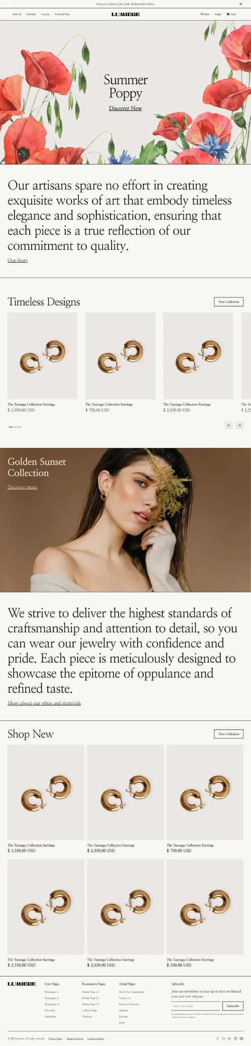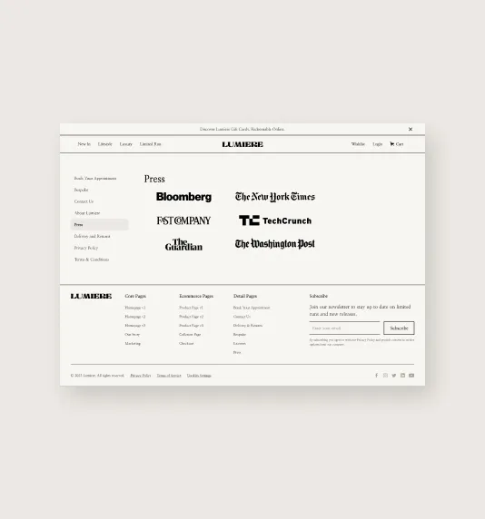 Lumiere is a luxury Webflow ecommerce template designed for brands that prioritize both aesthetics and functionality.